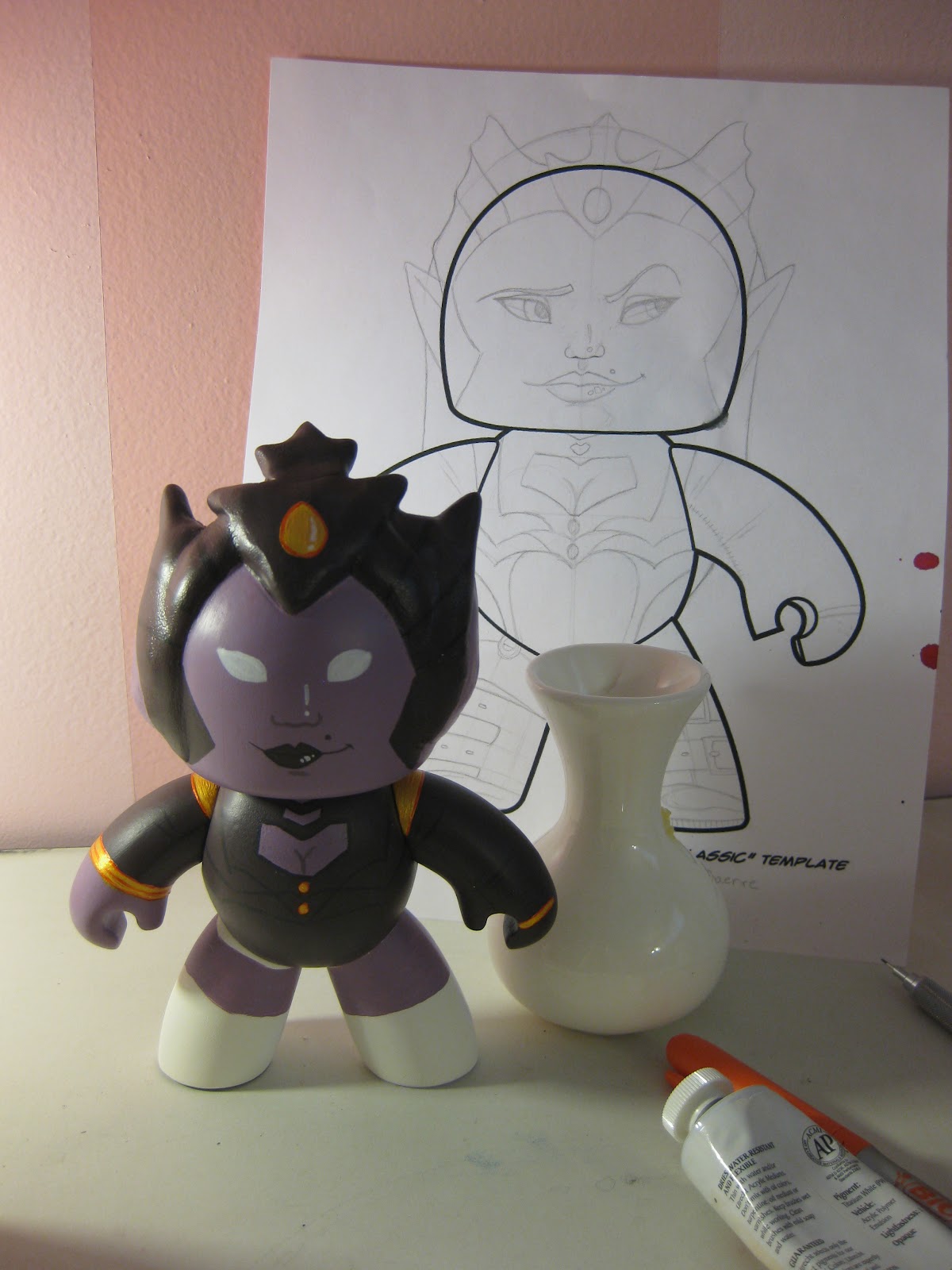 I apologize for having skipped taking pictures after this point in the process, but sometimes when you get your groove on you just get caught up in the moment when it comes to painting. I decided I didn't like the yellow for the gold in her outfit so I applied a few coats of Golden paint's gold acrylic to give it that shine. Once the figure was done I spray primed her with a protective coat.